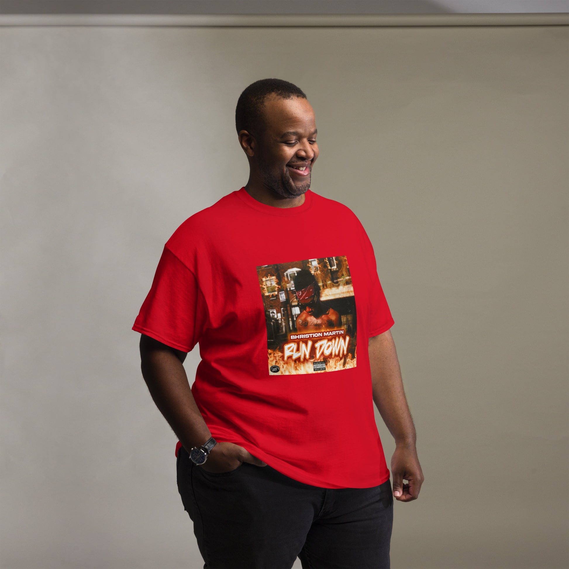 The 100% cotton men's classic tee will help you land a more structured look. It sits nicely, maintains sharp lines around the edges, and goes perfectly with layered streetwear outfits. Plus, it's extra trendy now!